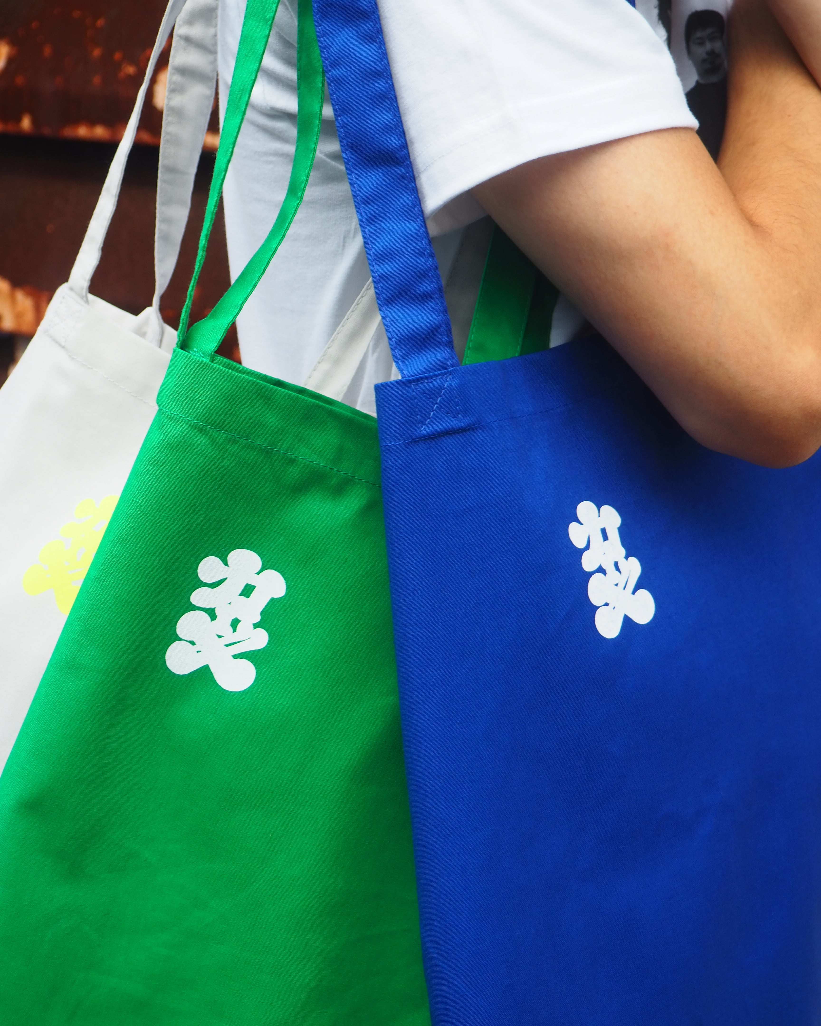 柿入ロゴ トートバッグ 〈ブルー / グリーン / グレー〉